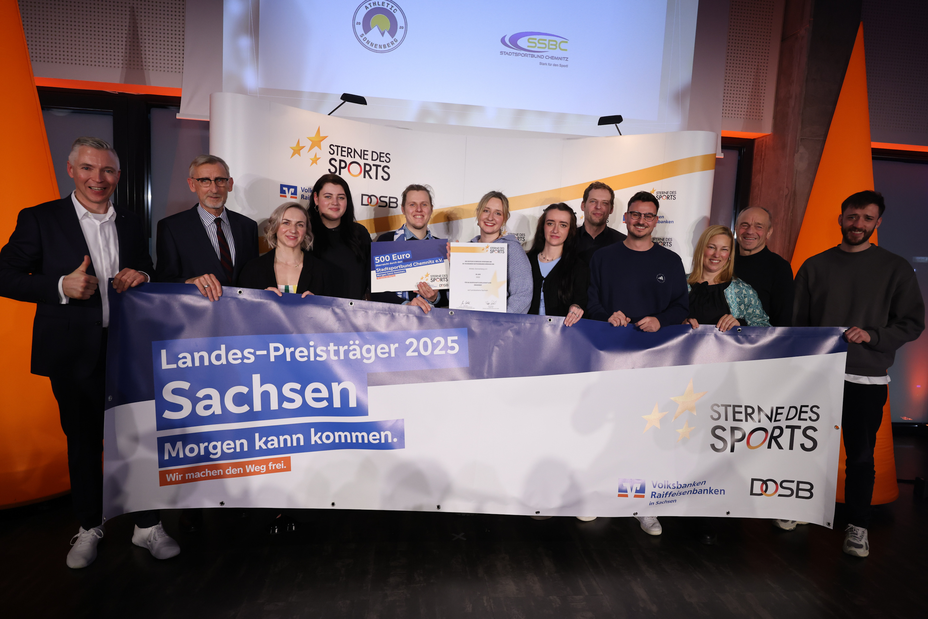 Markus Ziron, Vorstand der Volksbank Riesa eG, ergänzte: „Die Volksbanken Raiffeisenbanken fördern seit über 20 Jahren mit den ‚Sternen des Sports‘ gesellschaftliches Engagement im Breitensport. Der Wettbewerb, oft als ‚Oscar des Breitensports‘ bezeichnet, würdigt Projekte zu Integration, Nachhaltigkeit, Gesundheit und Jugendförderung. Die aktuelle Auszeichnung ‚Sterne des Sports Sachsen‘ zeigt erneut, wie unverzichtbar ehrenamtliches Engagement für unsere Gesellschaft ist. Die prämierten Vereine stehen für Werte wie Solidarität und Verantwortung – Grundpfeiler des genossenschaftlichen Gedankens. Gemeinsam mit den Vereinen stärken wir Strukturen, schaffen Anerkennung und gestalten eine lebenswerte Zukunft.“