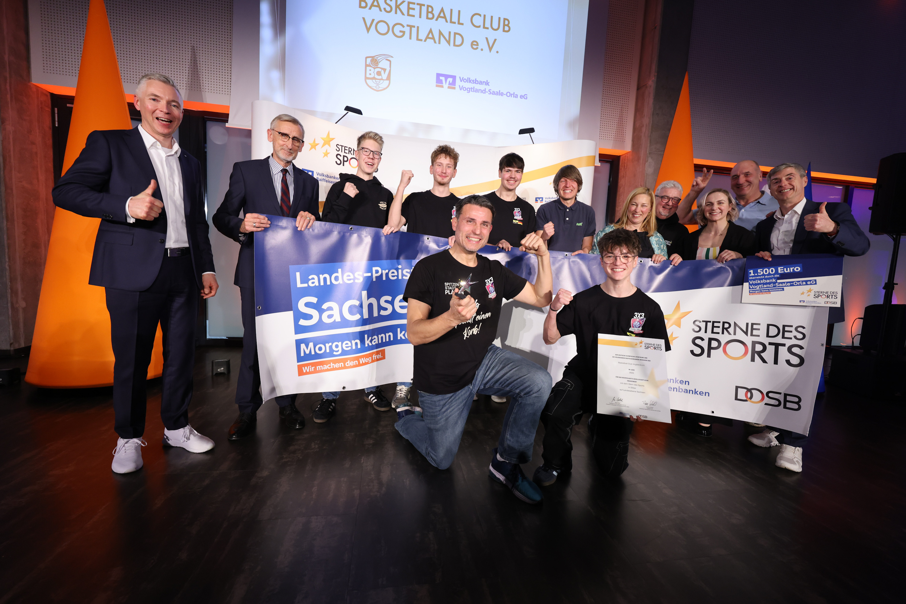 2. Platz/Kleiner Stern in Silber (1.500 Euro): Basketball Club Vogtland e.V. für das Projekt "Gib Gewalt einen Korb – Von der Straße ins Herz der Region Vogtland" begleitet von der Volksbank Vogtland-Saale-Orla eG.