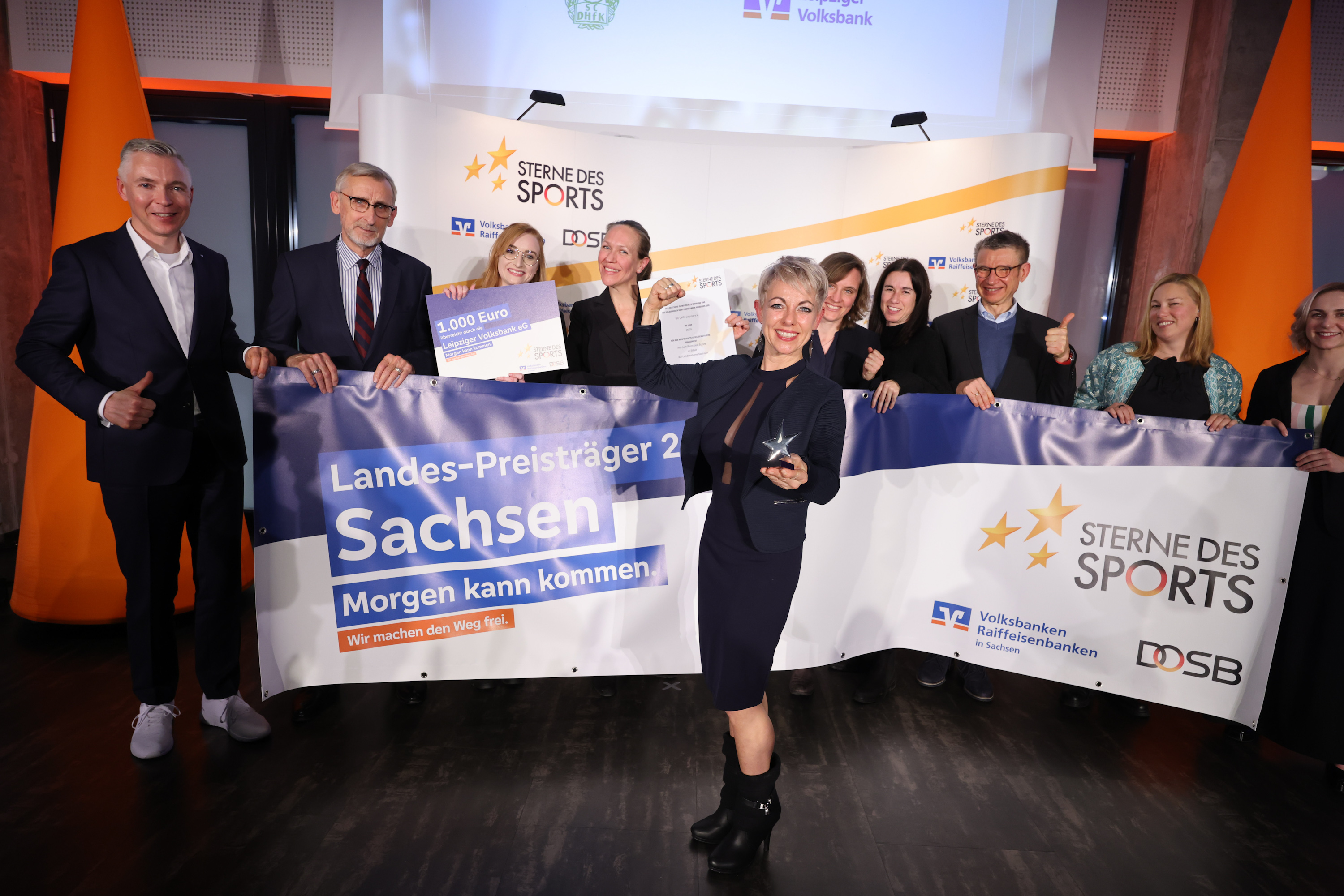 Markus Ziron, Vorstand der Volksbank Riesa eG, ergänzte: „Die Volksbanken Raiffeisenbanken fördern seit über 20 Jahren mit den ‚Sternen des Sports‘ gesellschaftliches Engagement im Breitensport. Der Wettbewerb, oft als ‚Oscar des Breitensports‘ bezeichnet, würdigt Projekte zu Integration, Nachhaltigkeit, Gesundheit und Jugendförderung. Die aktuelle Auszeichnung ‚Sterne des Sports Sachsen‘ zeigt erneut, wie unverzichtbar ehrenamtliches Engagement für unsere Gesellschaft ist. Die prämierten Vereine stehen für Werte wie Solidarität und Verantwortung – Grundpfeiler des genossenschaftlichen Gedankens. Gemeinsam mit den Vereinen stärken wir Strukturen, schaffen Anerkennung und gestalten eine lebenswerte Zukunft.“
